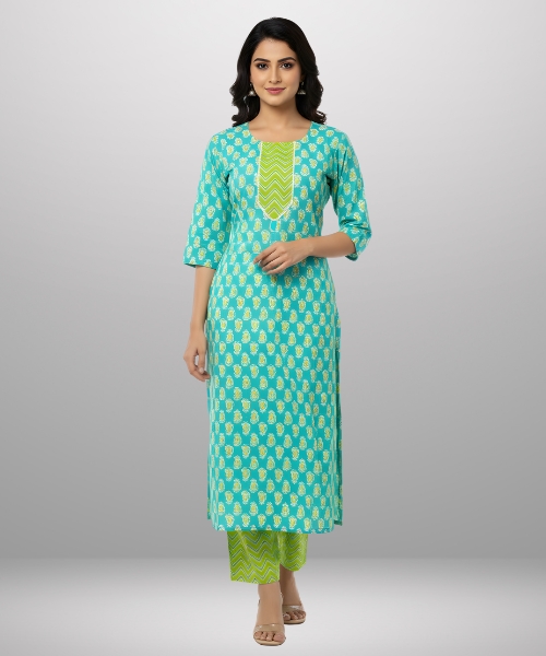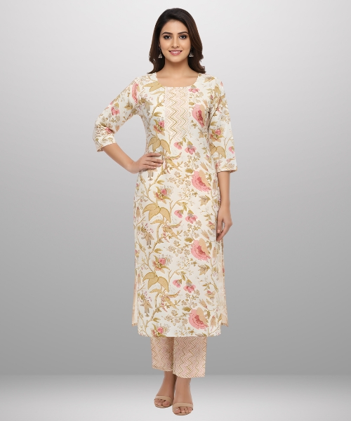 Regular Use Pure Cotton Kurti Pant Dupatta Set – Floral Print – Comfort Wear