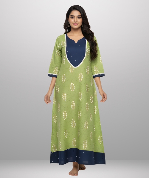Elegant Pure Cotton Printed Gown for Women | Comfortable Round Neck Full Length Dress
