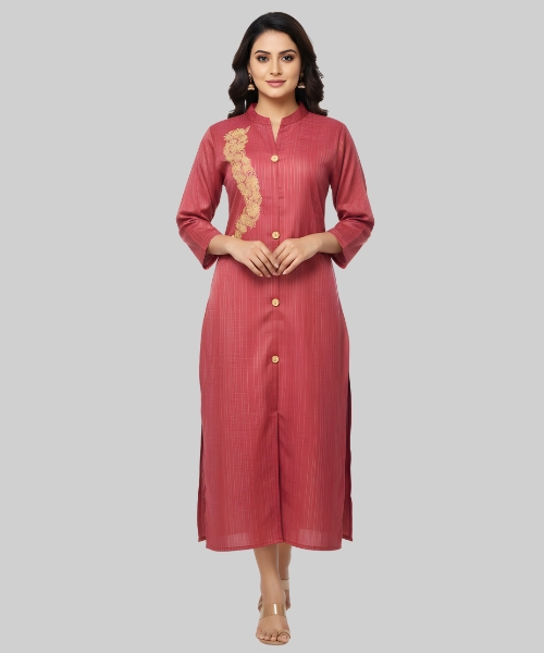 Maroon A-Line Kurti for Women | Elegant Thread Work Design | 3/4 Sleeves